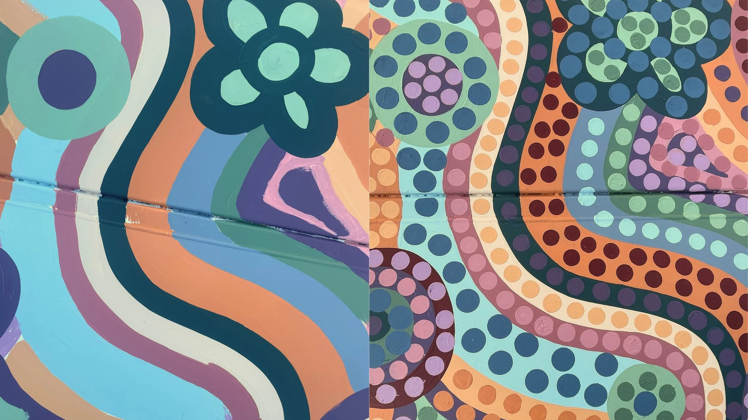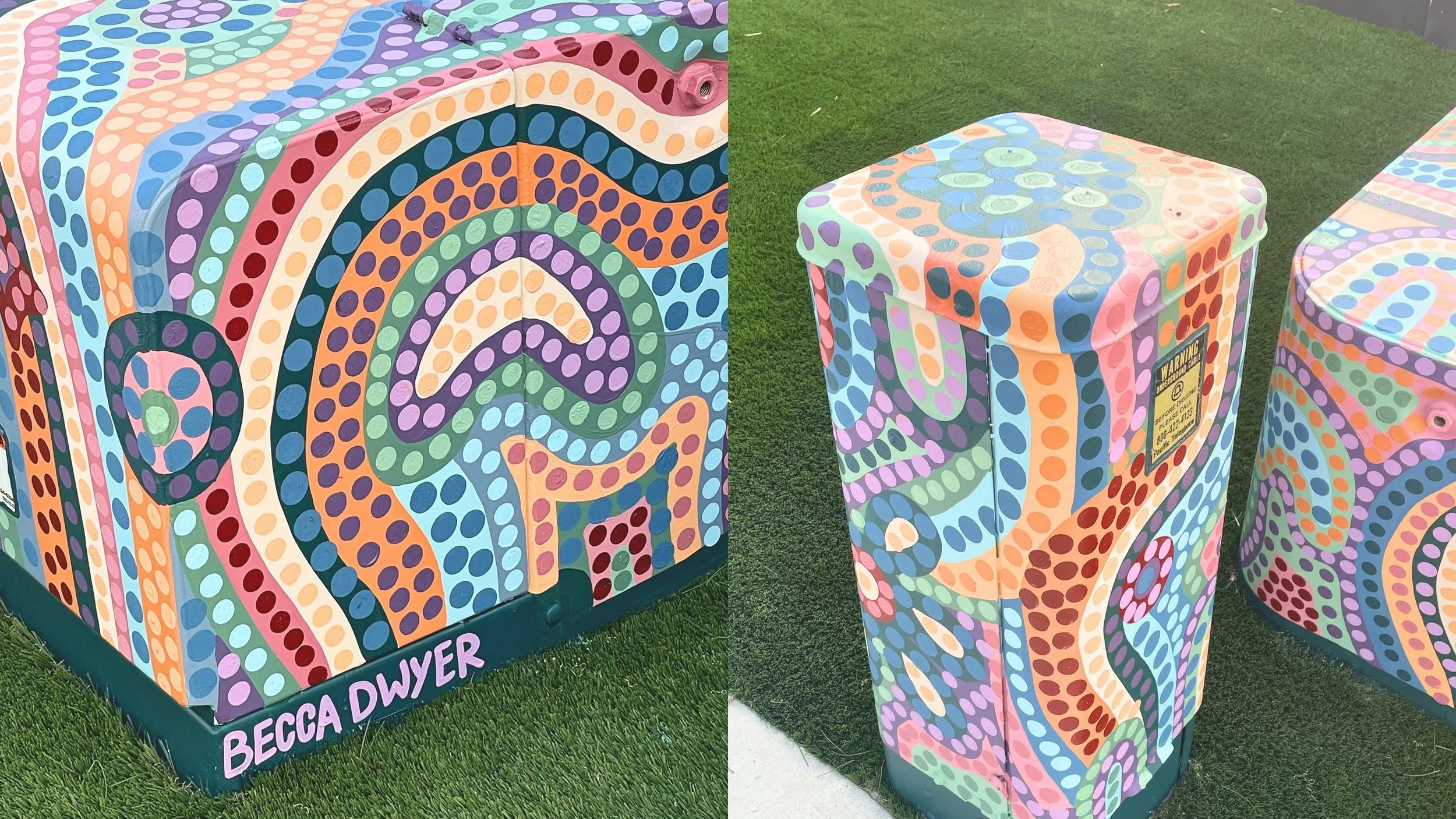 At the end of 2024, I had the opportunity to paint this vibrant, dotted utility box outside someone’s residence. This project reminded me why I love creating public art—I’m so grateful I get to bring joy to people through my work. It’s been a while since I shared behind-the-scenes details of a utility box project, so I figured this was the perfect opportunity!