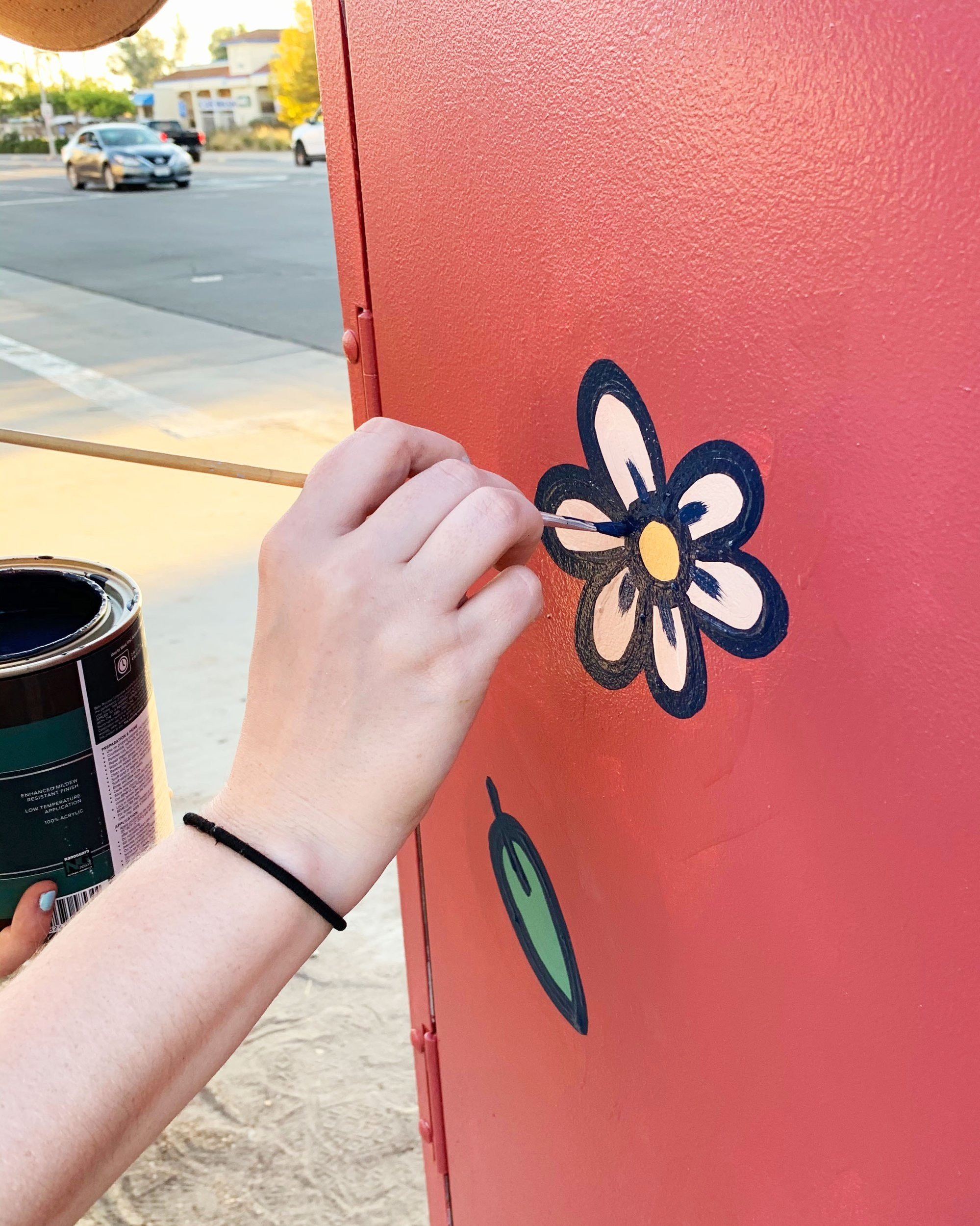 If you want to read in-depth blog posts about my first utility box experience, please click here. You can also click here to read the post I wrote about my second utility box in La Mesa. In both of those, I go into more detail about my supplies and painting process.