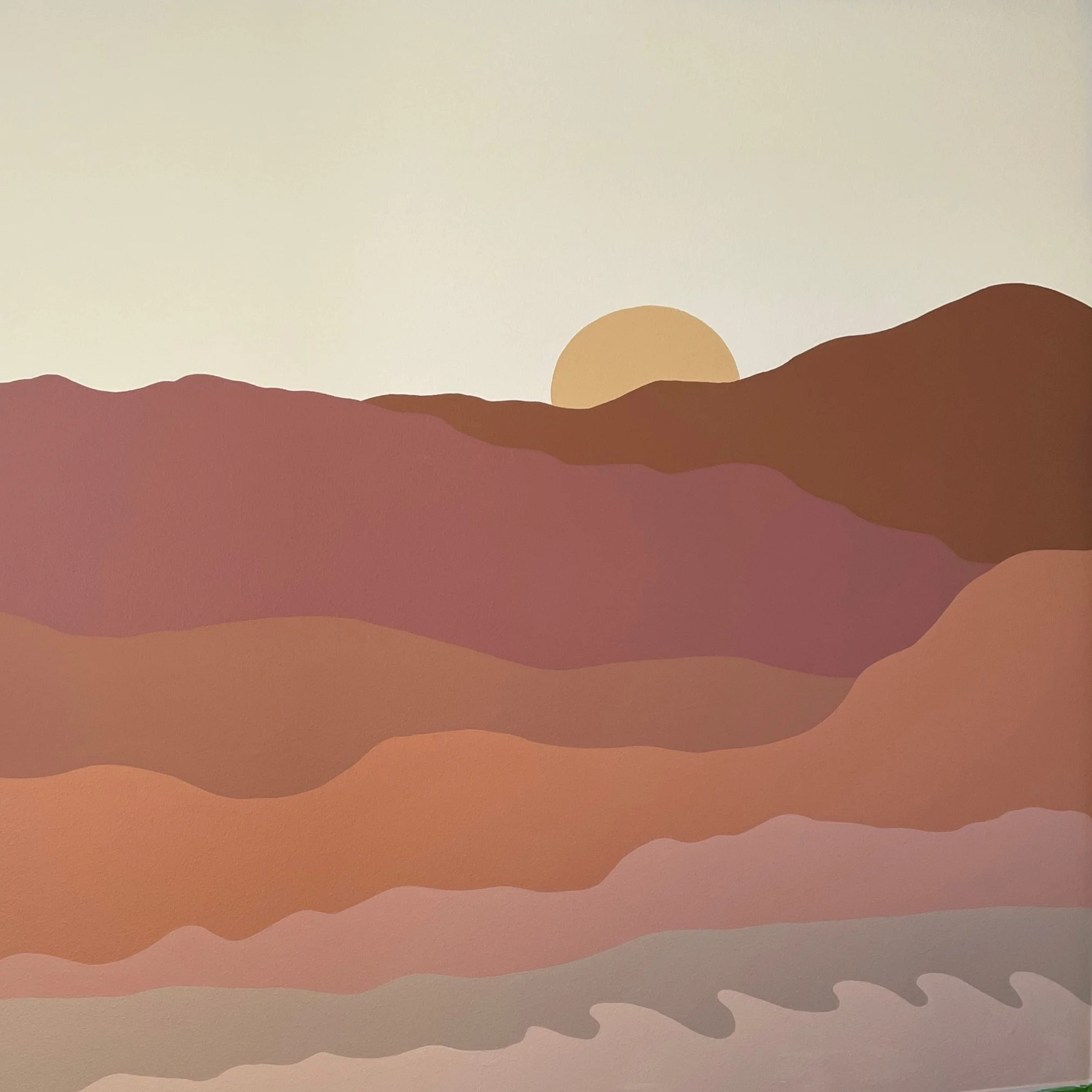 Starting off with the top layer, I painted a light cream color for the sky. I then started on the first mountain layer in Terra Cotta Urn by Behr. (Unfortunately, I ended up having to paint over my third layer but didn’t realize that at this time.) I took a quick break and painted two more layers before calling it quits for the day. I felt satisfied with my progress and went home to go to bed early so I could start fresh the next day.