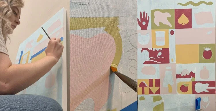 Luckily I’ve found the cure for this process is taking lots of breaks to pet my cats, eat a snack, or watch TikToks (guilty). I’ll also usually put on whole albums that I can zone out to or binge listen to podcasts while I paint the details. Somehow it makes the time go by faster!